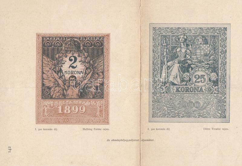 Leírás: 1899 Okmánybélyeg pályázatra beadott pályaművek nyomata