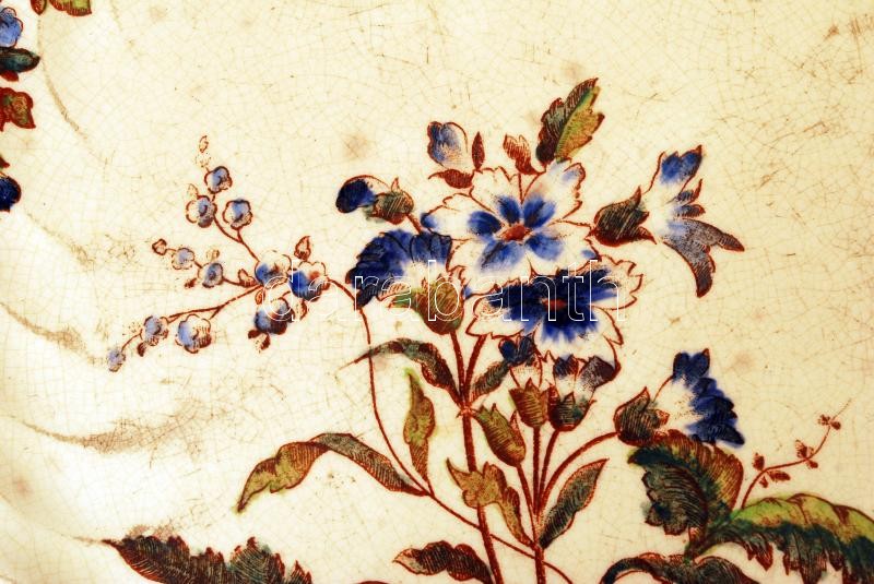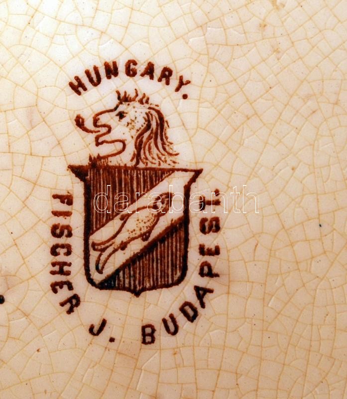 Leírás: Fischer dísztányér, apró lepattanásokkal, jelzett, kézzel festett, d:26 cm
