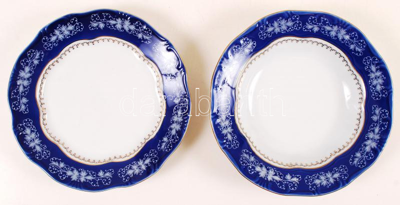Leírás: Zsolnay Pompadour lapos és leveses tányér, kézzel festett, jelzett, hibátlan, d:23,5 és 24 cm