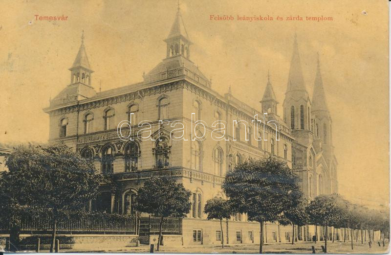 Temesvár, Felsőbb leányiskola és zárdatemplom / Girl school, church (p... https://www.darabanth.com/hu/218-Gyorsarveres/218.0/Kepeslapok/Erdely~400006/Temesvar-Felsobb-leanyiskola-es-zardatemplom-Girl-school-church-pinhole~II900766