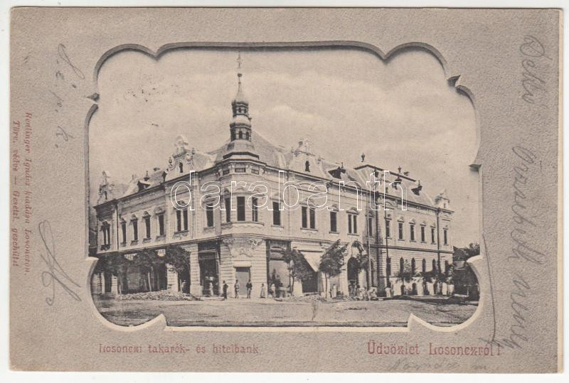 Leírás: Losonc, Takarék és Hitelbank, kiadja Renlinger Ignác / bank, Art Nouveau (EK)