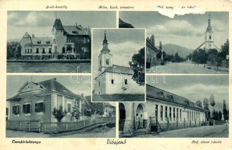 Diósjenő, Sváb kastély, Csendőrlaktanya, Református elemi iskola (EK) https://www.darabanth.com/hu/218-Gyorsarveres/218.0/Kepeslapok/Magyarorszag~400005/Diosjeno-Svab-kastely-Csendorlaktanya-Reformatus-elemi-iskola-EK~II927155
