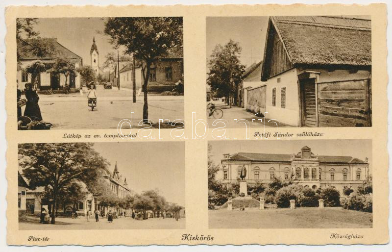 Kiskőrös, Petőfi Sándor szülőháza, Piac tér, Községháza (EK) https://www.darabanth.com/hu/218-Gyorsarveres/218.0/Kepeslapok/Magyarorszag~400005/Kiskoros-Petofi-Sandor-szulohaza-Piac-ter-Kozseghaza-EK~II925876