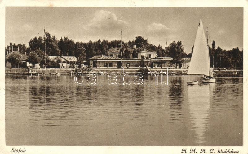 Siófok, A M.A.C. klubháza https://www.darabanth.com/hu/218-Gyorsarveres/218.0/Kepeslapok/Magyarorszag~400005/Siofok-A-MAC-klubhaza~II925447
