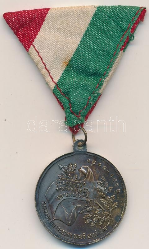 1898. "1848-1898 Szabadságharcunk Dicső Emlékére" Br emlékérem szalagg... https://www.darabanth.com/hu/218-Gyorsarveres/218.0/Numizmatika/Falerisztika-Kituntetesek-jelvenyek~300015/1898-1848-1898-Szabadsagharcunk-Dicso-Emlekere-Br-emlekerem-szalaggal-29mm-T2~II927554