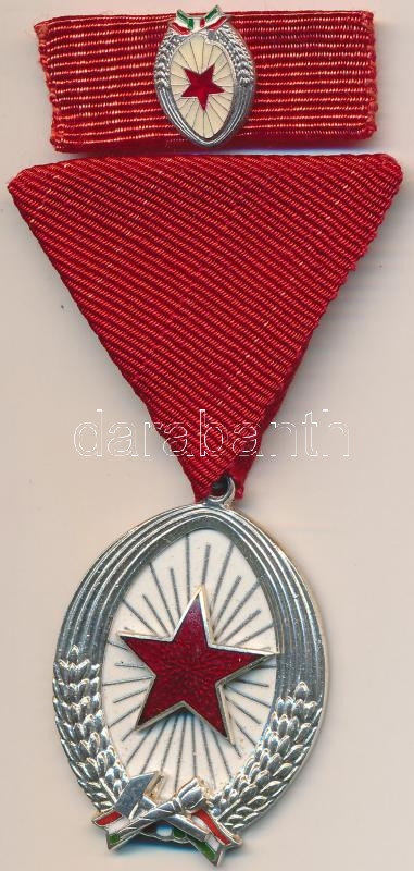 Leírás: ~1965. "A Munka Érdemrend ezüst fokozata" mellszalagon, miniatűrrel szalagsávon, eredeti tokban T:1-