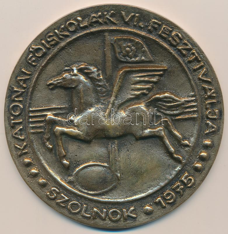 Leírás: 1975. "Katonai Főiskolák VI. Fesztiválja - Szolnok 1975" Br plakett (110mm) T:2 hátlapon ragasztásnyom