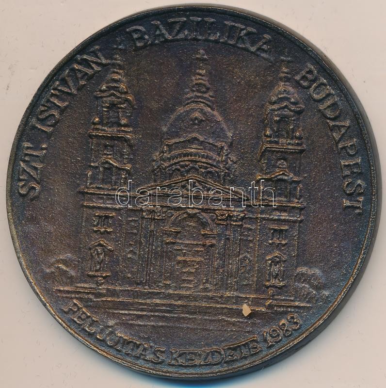 Leírás: 1983. "Szent István Bazilika felújítása" nagyalakú öntött Br emlékérem dísztokban, szign.:PAX (82mm) T:1