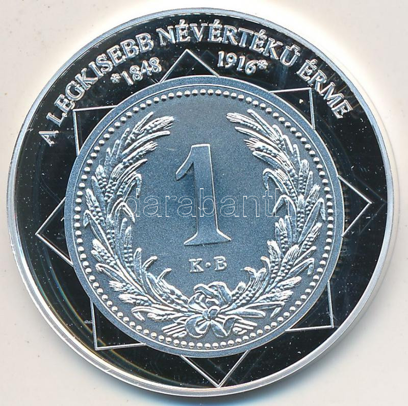 Leírás: DN "A magyar nemzet pénzérméi - A legkisebb névértékű érme 1848-1916." Ag emlékérem (10,37g/0.999/35mm) T:PP tanúsítvánnyal!