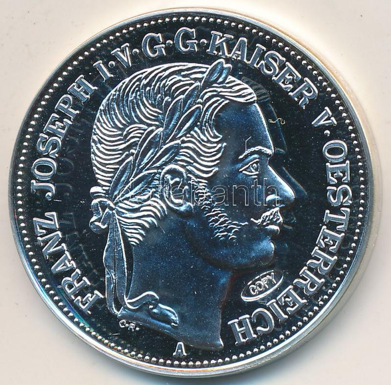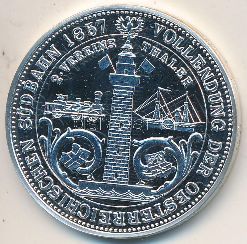 Leírás: DN "Osztrák-Magyar Monarchia pénzei utánveretben - Két egyleti-tallér 1857" ezüstözött Cu-Ni emlékérem tanúsítvánnyal (40mm) T:PP