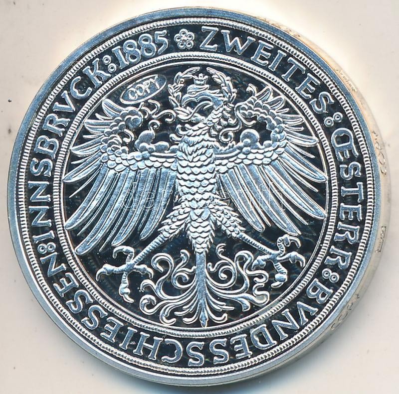 Leírás: DN "Osztrák-Magyar Monarchia pénzei utánveretben - Két gulden 1885" ezüstözött Cu-Ni emlékérem tanúsítvánnyal (38mm) T:PP