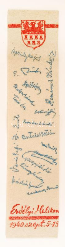 Leírás: 1940 szept. 5-15. Erdélyi Helikonos könyvjelző, híres írók nyomott aláírásaival.