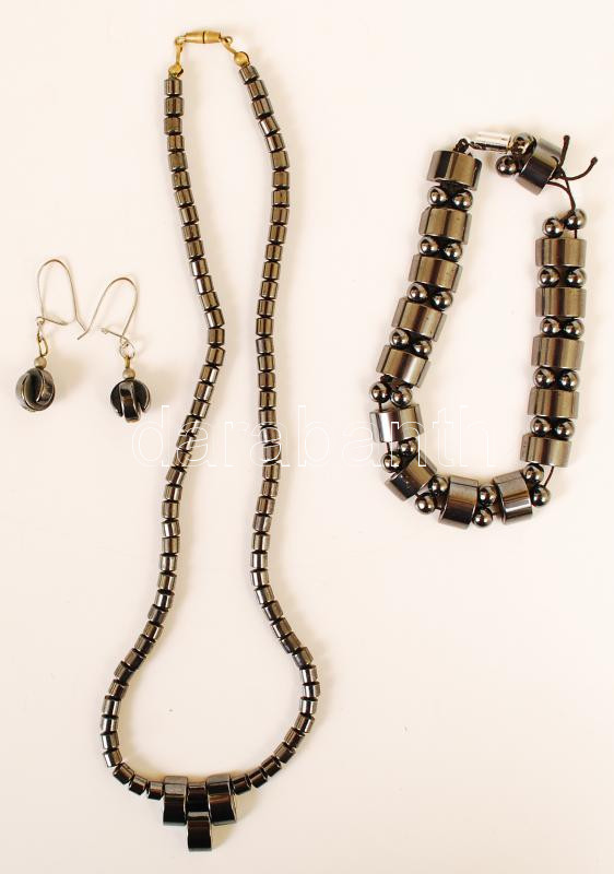 Leírás: Hematit nyaklánc karkötővel fülbevalópárral, nyaklánc h: 40 cm