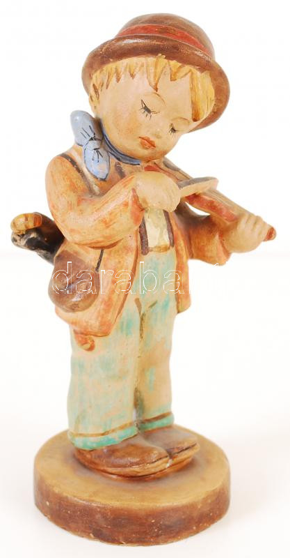 Leírás: Hegedülő kisfiú, kézzel festett kerámia, jelzett (Hummel copy!), hibátlan, m:17 cm