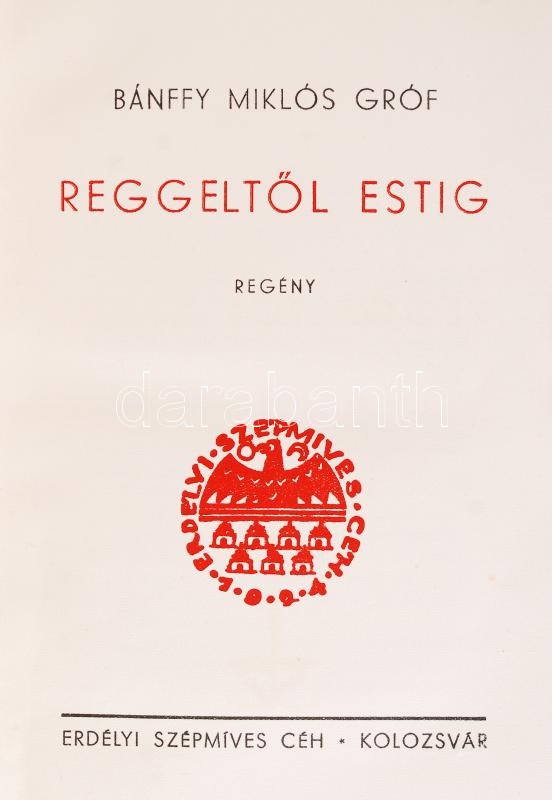 Bánffy Miklós: Reggeltől estig. Kolozsvár, [1934], Erdélyi Szépmives C... https://www.darabanth.com/hu/219-Gyorsarveres/219.0/Festmeny-mutargy-papirregiseg-egyeb/Konyvek-Erdelyi-Szepmives-Ceh-kiadasai~500012/Banffy-Miklos-Reggeltol-estig-Kolozsvar-1934-Erdelyi-Szepmives-Ceh-Kiadoi-halinakotC3~II936125