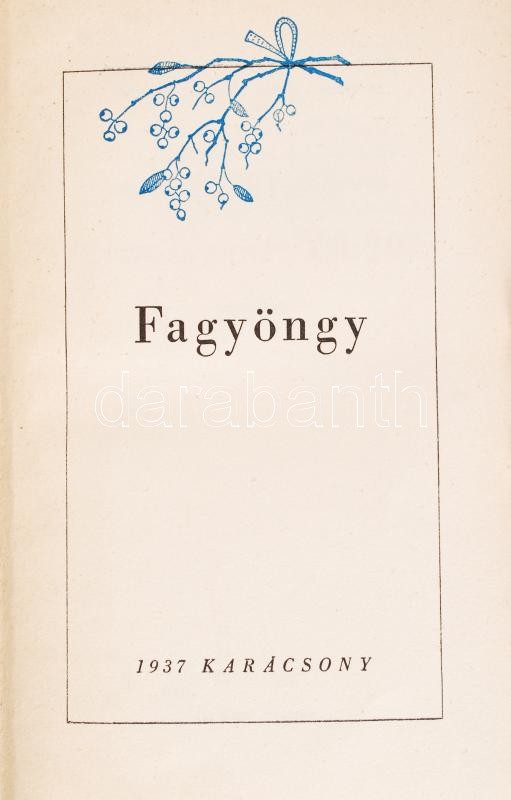 Fagyöngy. 1937 karácsony. Bp., 1937, Révai. Nyirő József, Makkai Sándor, Tamási Áron, Mécs László, Tormay Cecile, Kosztolányi, Márai és mások novelláival. Bibliofil kiadás, 1072. sorszámozott, névre szóló példány. Kiadói halinakötésben, jó állapotban.