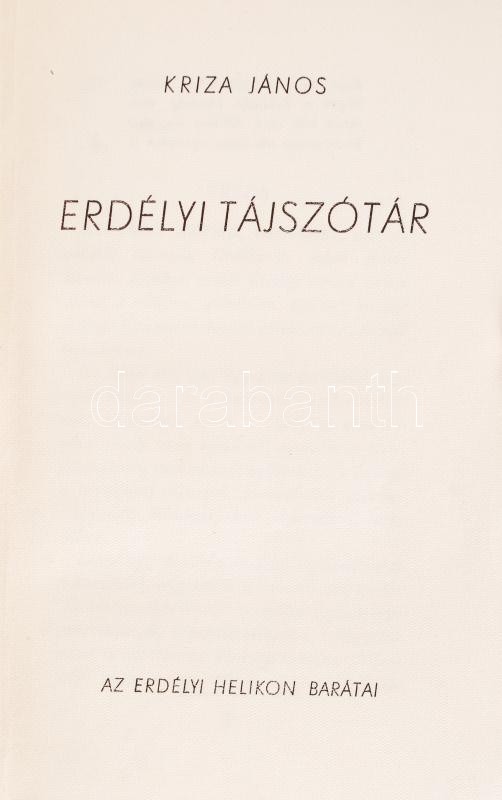 Leírás: Kriza János: Erdélyi tájszótár. Bp., é.n., Az Erdélyi Helikon barátai. Kiadói halinakötésben, jó állapotban.