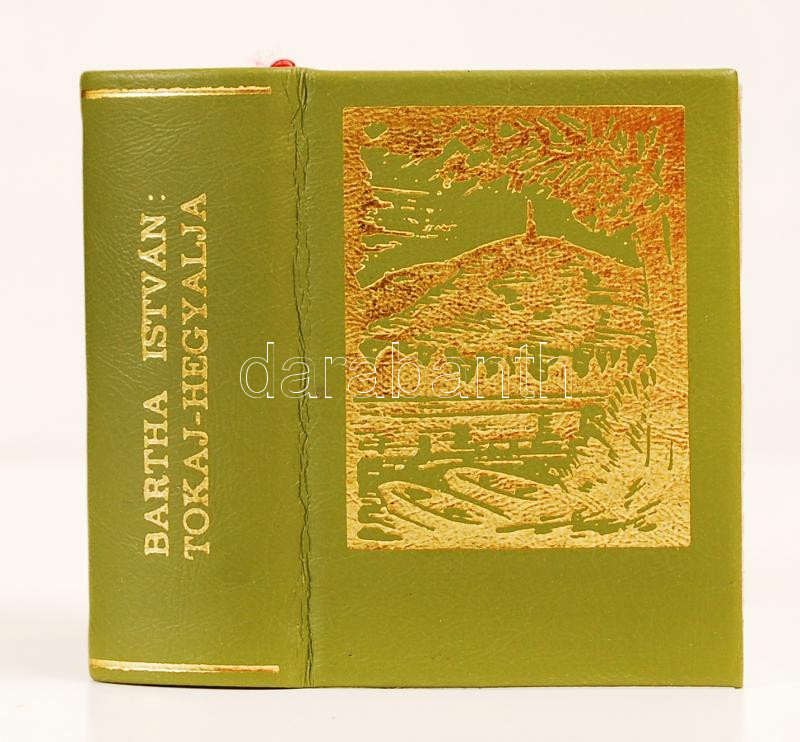 Bartha István: Tokaj-Hegyalja. A borkereskedés problémái és a szőlőőrzés szervezése a Hegyalján a XIX. század első felében. Miskolc, 1975. Minikönyv, 108. sorszámozott példány, készült 1000 számozott példányban, könyvárusi forgalomba nem került. Andruskó Károly (1915-2008) fametszeteivel illusztrálva. Aranyozott műbőr kötésben, jó állapotban.
