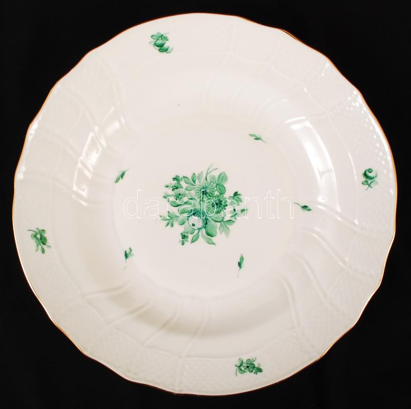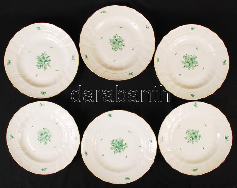 Leírás: Herendi antik virág mintás lapostányér készlet (6db), kézzel festett, hibátlan, jelzett, d:25 cm, m:3,4 cm