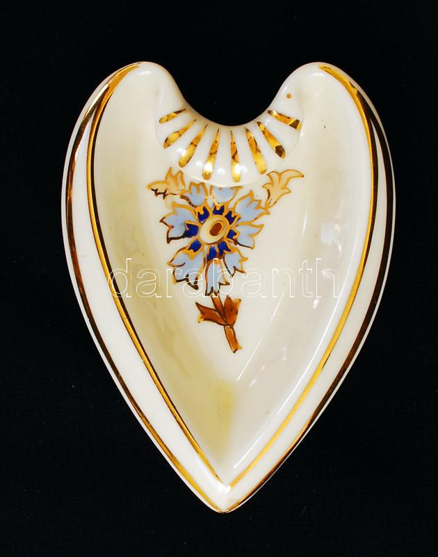 Leírás: Zsolnay búzavirág mintás szívecske, kézzel festett, jelzett, hibátlan, 11×8 cm /