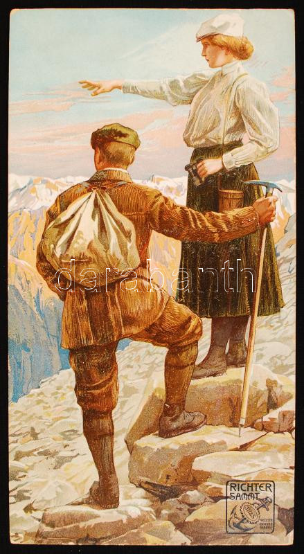 cca 1890-1900 JR&S Richter Sammt, Hegymászók, litho reklám, 26x14 cm https://www.darabanth.com/hu/219-Gyorsarveres/219.0/Festmeny-mutargy-papirregiseg-egyeb/Reklam~500036/cca-1890-1900-JRS-Richter-Sammt-Hegymaszok-litho-reklam-26x14-cm~II934190