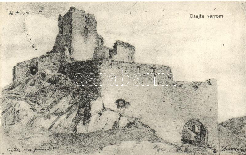 Csejte vára / castle, artist signed https://www.darabanth.com/hu/219-Gyorsarveres/219.0/Kepeslapok/Felvidek~300007/Csejte-vara-castle-artist-signed~II934557