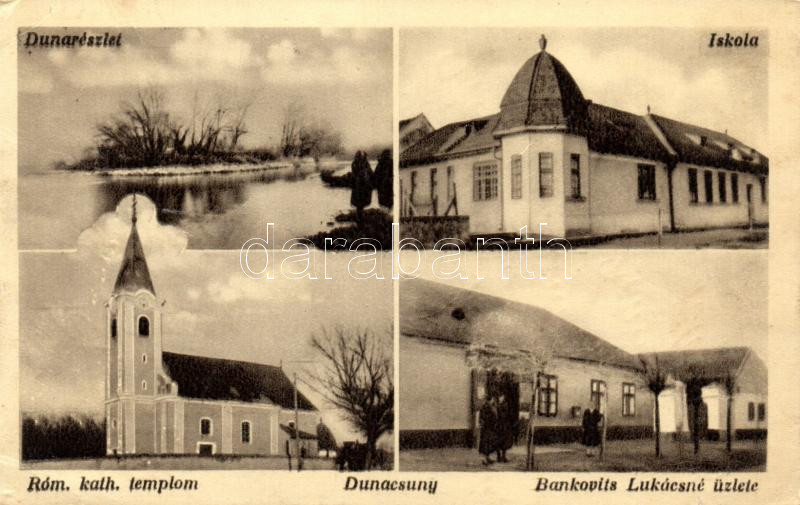 Dunacsún, iskola, Bankovits Lukácsné üzlete, Római katolikus templom /... https://www.darabanth.com/hu/219-Gyorsarveres/219.0/Kepeslapok/Felvidek~300007/Dunacsun-iskola-Bankovits-Lukacsne-uzlete-Romai-katolikus-templom-school-shop-Roman-cath~II935883