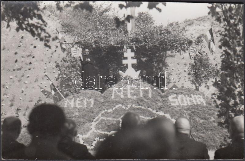 Leírás: 1937 Tatabánya - Alsógalla, ünnepség, irredenta, ferdén vágott fotópapír, Szlávik Rózsi photo