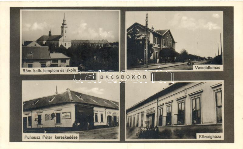 Bácsbokod, vasútállomás, Puhausz Péter kereskedése, Községháza, Római ... https://www.darabanth.com/hu/219-Gyorsarveres/219.0/Kepeslapok/Magyarorszag~300005/Bacsbokod-vasutallomas-Puhausz-Peter-kereskedese-Kozseghaza-Romai-katolikus-iskola~II934917