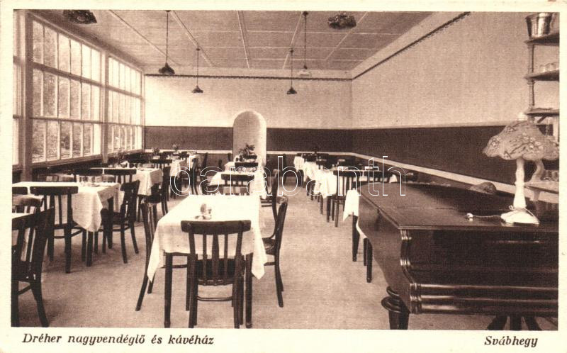 Budapest XII. Svábhegy, Dréher nagyvendéglő és kávéház belső (EK) https://www.darabanth.com/hu/219-Gyorsarveres/219.0/Kepeslapok/Magyarorszag~300005/Budapest-XII-Svabhegy-Dreher-nagyvendeglo-es-kavehaz-belso-EK~II937362