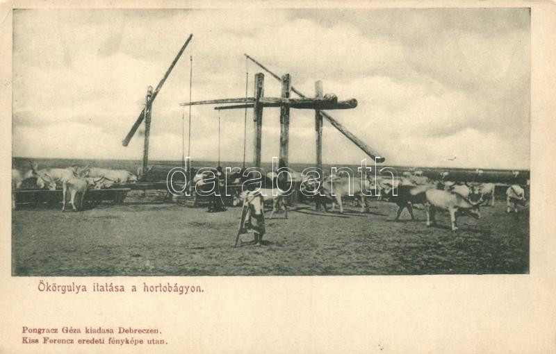 Leírás: Hortobágy, ökörgulya itatáson, Pongrácz Géza kiadása, Kiss Ferenc eredeti fényképe után (EK)