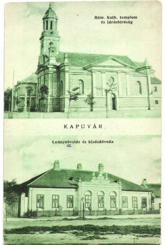 Leírás: Kapuvár, Járásbíróság, Leánynevelde és kisdedóvó, kiadja Buxbaum Kálmán (EK)