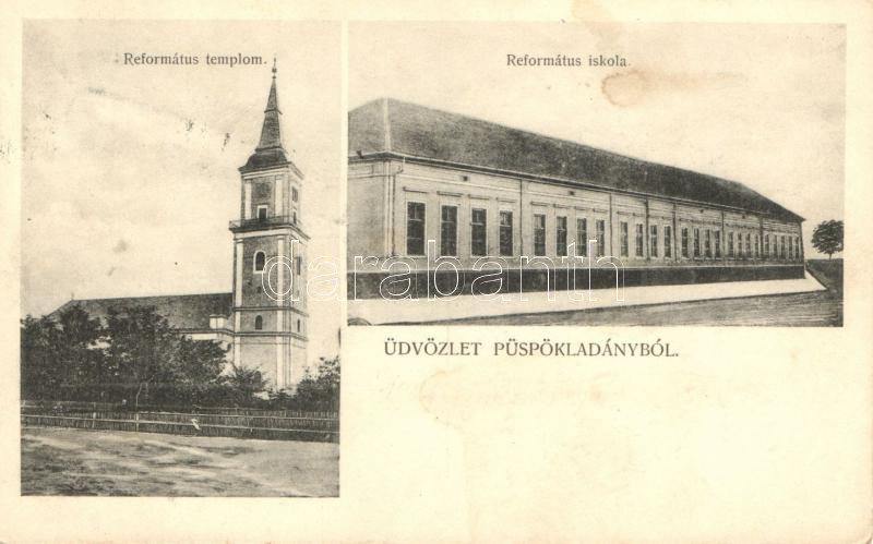 Püspökladány, Református templom és iskola https://www.darabanth.com/hu/219-Gyorsarveres/219.0/Kepeslapok/Magyarorszag~300005/Puspokladany-Reformatus-templom-es-iskola~II935865