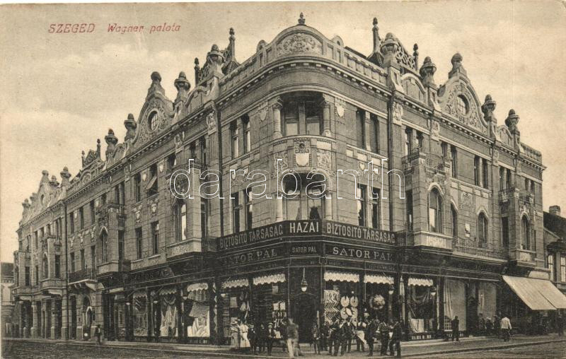 Szeged, Wagner palota, Hazai Biztosítótársaság, Sator Pál üzlete (EK) https://www.darabanth.com/hu/219-Gyorsarveres/219.0/Kepeslapok/Magyarorszag~300005/Szeged-Wagner-palota-Hazai-Biztositotarsasag-Sator-Pal-uzlete-EK~II934609