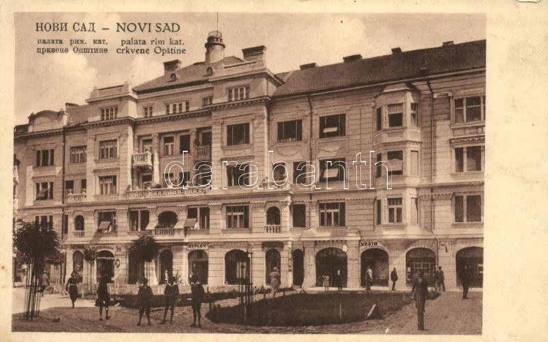 Újvidék, Roman catholic parish, shops https://www.darabanth.com/hu/219-Gyorsarveres/219.0/Kepeslapok/Vajdasag~300015/Ujvidek-Roman-catholic-parish-shops~II938573