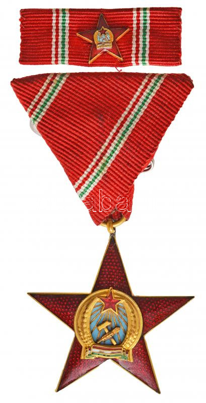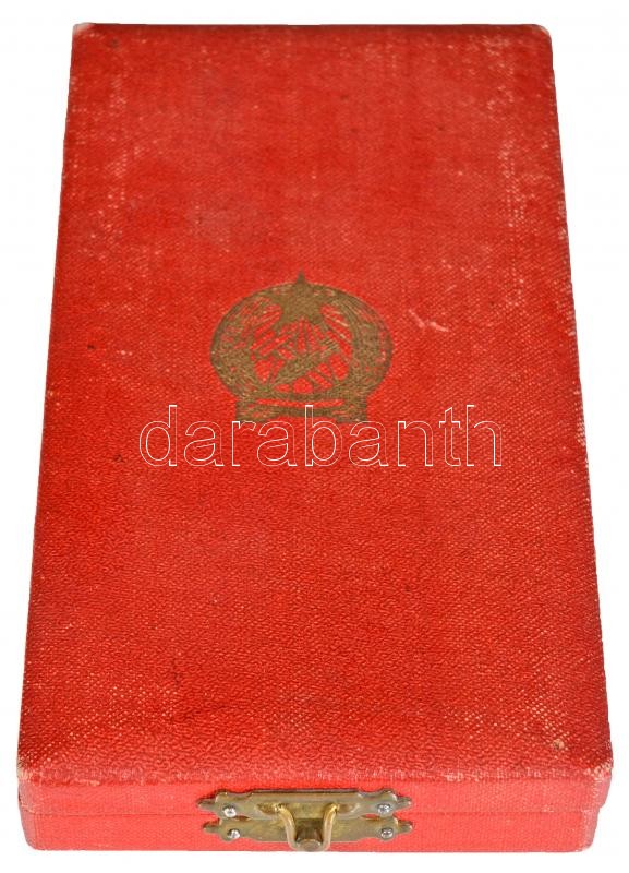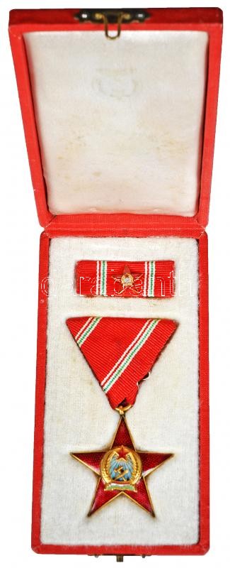 Hungary 1949. "Medal of Merit of the Hungarian Peoples Republic Gold class" enamelled gilt Br decoration on ribbon, with thin ribbon and miniature in original case C:AU,XF small enamel error