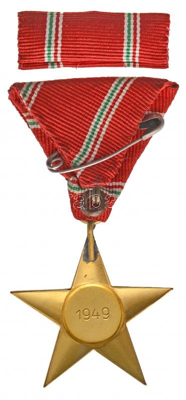 1949. "A Magyar Népköztársasági Érdemérem arany fokozata" zománcozott aranyozott bronz kitüntetés mellszalaggal, szalagsávval és miniatűrrel adományozói tokban T:1-,2 kis zománchiány