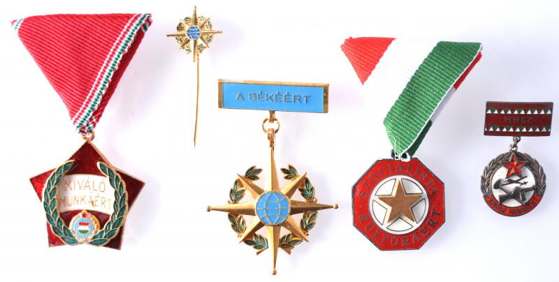 4db szocialista, zománcozott kitüntetés, mind dÃsztokban: "A Békéért" miniatűrrel, "Kiváló Munkáért", "MHSZ Kiváló Munkáért", "Szocialista Kultúráért" T:1,1-,2