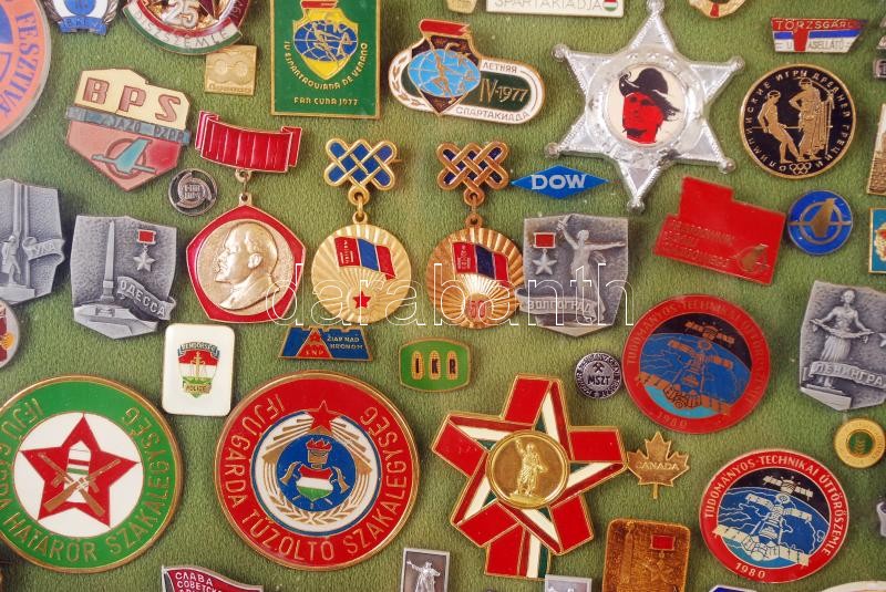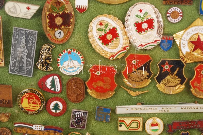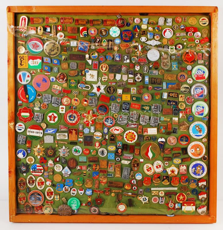 Leírás: kb 350db-os magyar és külföldi kitüntetés, jelvény gyűjtemény főleg a szocialista időszakból, 65x62cm-es üvegezett tablóban T:vegyes
