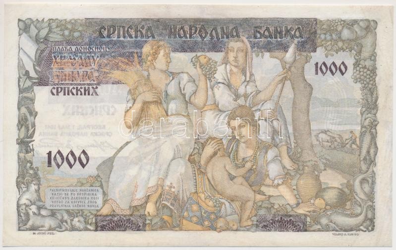 Leírás: Szerbia/német megszállás 1941. 1000D (500D-os bankjegyre nyomtatva) T:restaurált