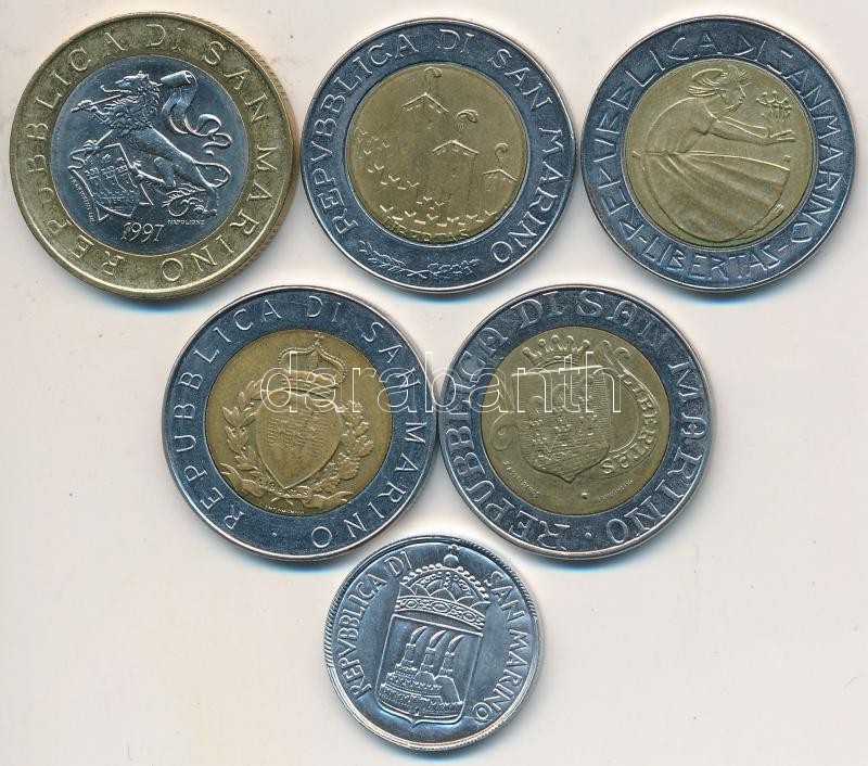Leírás: San Marino 1973-1997. 5L-1000L 6klf fémpénz T:2
