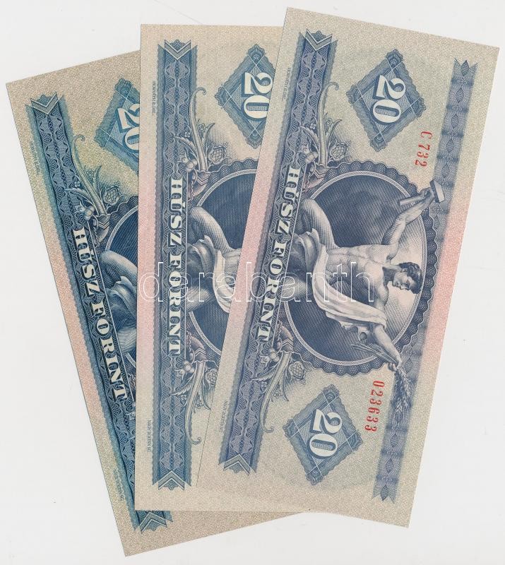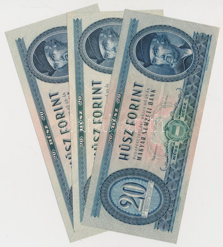 1957. 20Ft T:III + 1975-1980. 20Ft (2x) T:I,III https://www.darabanth.com/hu/219-Gyorsarveres/219.0/Numizmatika/Magyar-bankjegyek~200006/1957-20Ft-TIII-plus-1975-1980-20Ft-2x-TI-III~II933619