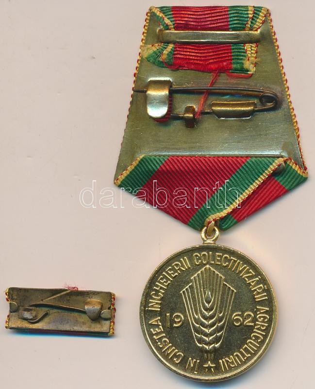 Románia 1962. "A mezőgazdaság kollektivizálásának bejezése" aranyozott fém emlékérem mellszalagon szalagsávval eredeti tokban T:2