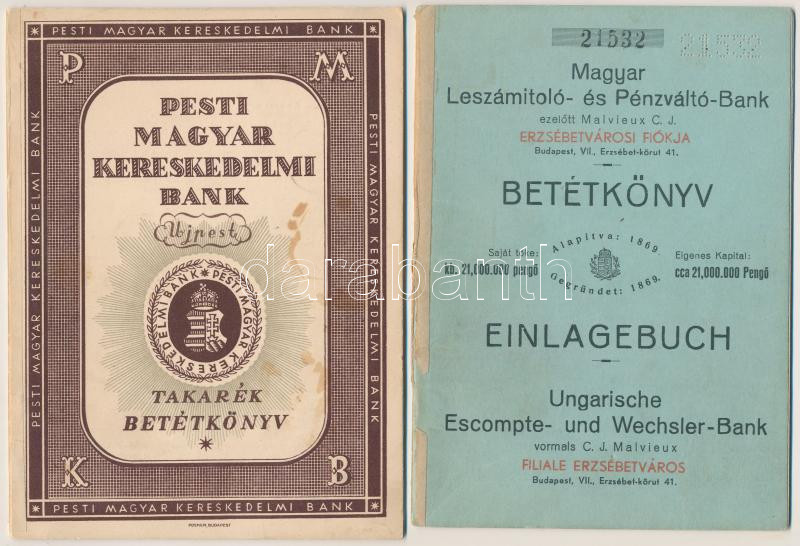 Leírás: 1942 . "Magyar Leszámítoló és Pénzváltó Bank" betétkönyve + 1943. "Pesti Magyar Kereskedelmi Bank" takarékbetétkönyve