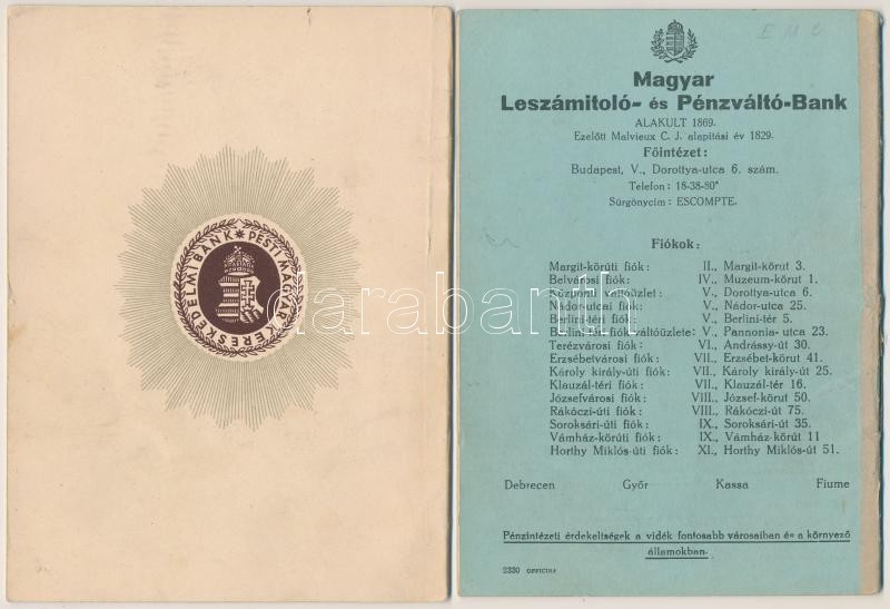 1942 . "Magyar Leszámítoló és Pénzváltó Bank" betétkönyve + 1943. "Pes... https://www.darabanth.com/hu/219-Gyorsarveres/219.0/Numizmatika/Numizmatikaval-kapcsolatos-egyeb-tetelek~200003/1942-Magyar-Leszamitolo-es-Penzvalto-Bank-betetkonyve-plus-1943-Pesti-Magyar-Kereskedelm~II935383