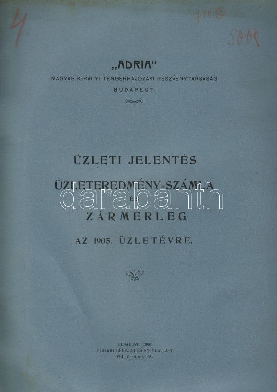 1906 Az Adria M. Kir. Tengerhajózási Rt. üzleti jelentése https://www.darabanth.com/hu/22-Gyorsarveres/22.0/Festmeny-mutargy-papirregiseg-egyeb/Nyomtatvanyok~183/1906-Az-Adria-M-Kir-Tengerhajozasi-Rt-uzleti-jelentese~II42912