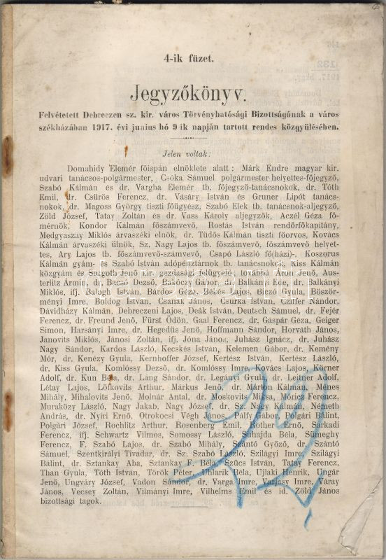 1917 Jegyzőkönyv Debrecen törvényhatósági bizottságának üléséről https://www.darabanth.com/hu/22-Gyorsarveres/22.0/Festmeny-mutargy-papirregiseg-egyeb/Nyomtatvanyok~183/1917-Jegyzokonyv-Debrecen-torvenyhatosagi-bizottsaganak-uleserol~II42929
