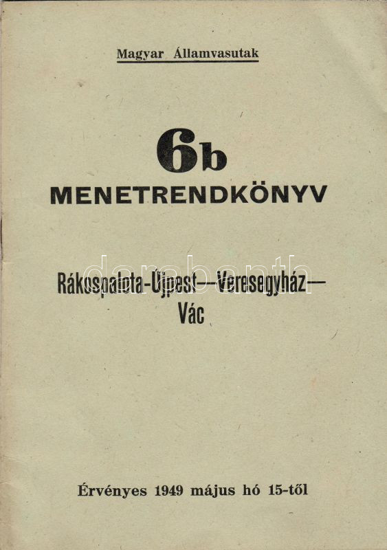 1949 Magyar Államvasutak 6b. menetrendkönyve https://www.darabanth.com/hu/22-Gyorsarveres/22.0/Festmeny-mutargy-papirregiseg-egyeb/Nyomtatvanyok~183/1949-Magyar-Allamvasutak-6b-menetrendkonyve~II43179
