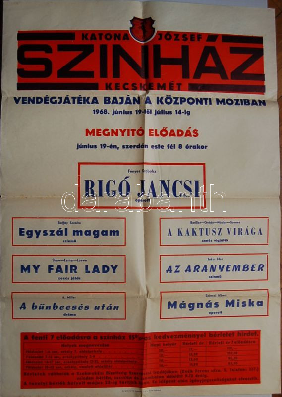 1968 Kecskeméti színház plakátja https://www.darabanth.com/hu/22-Gyorsarveres/22.0/Festmeny-mutargy-papirregiseg-egyeb/Nyomtatvanyok~183/1968-Kecskemeti-szinhaz-plakatja~II42843