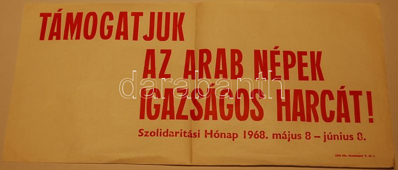 1968 Plakát Támogatjuk az arab népek igazságos harcát https://www.darabanth.com/hu/22-Gyorsarveres/22.0/Festmeny-mutargy-papirregiseg-egyeb/Nyomtatvanyok~183/1968-Plakat-Tamogatjuk-az-arab-nepek-igazsagos-harcat~II42806